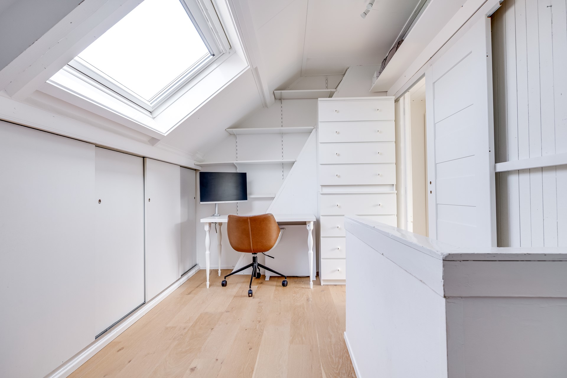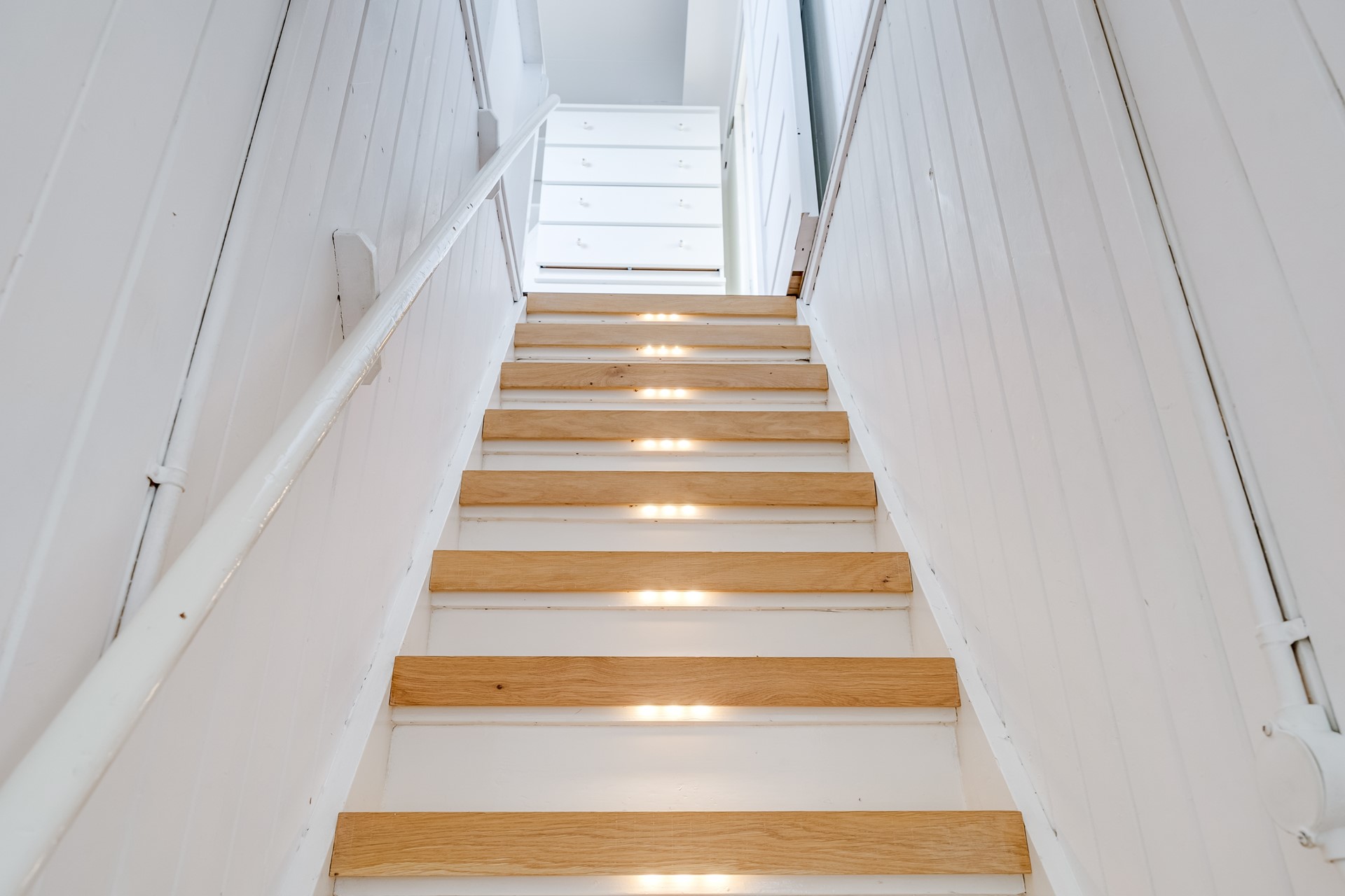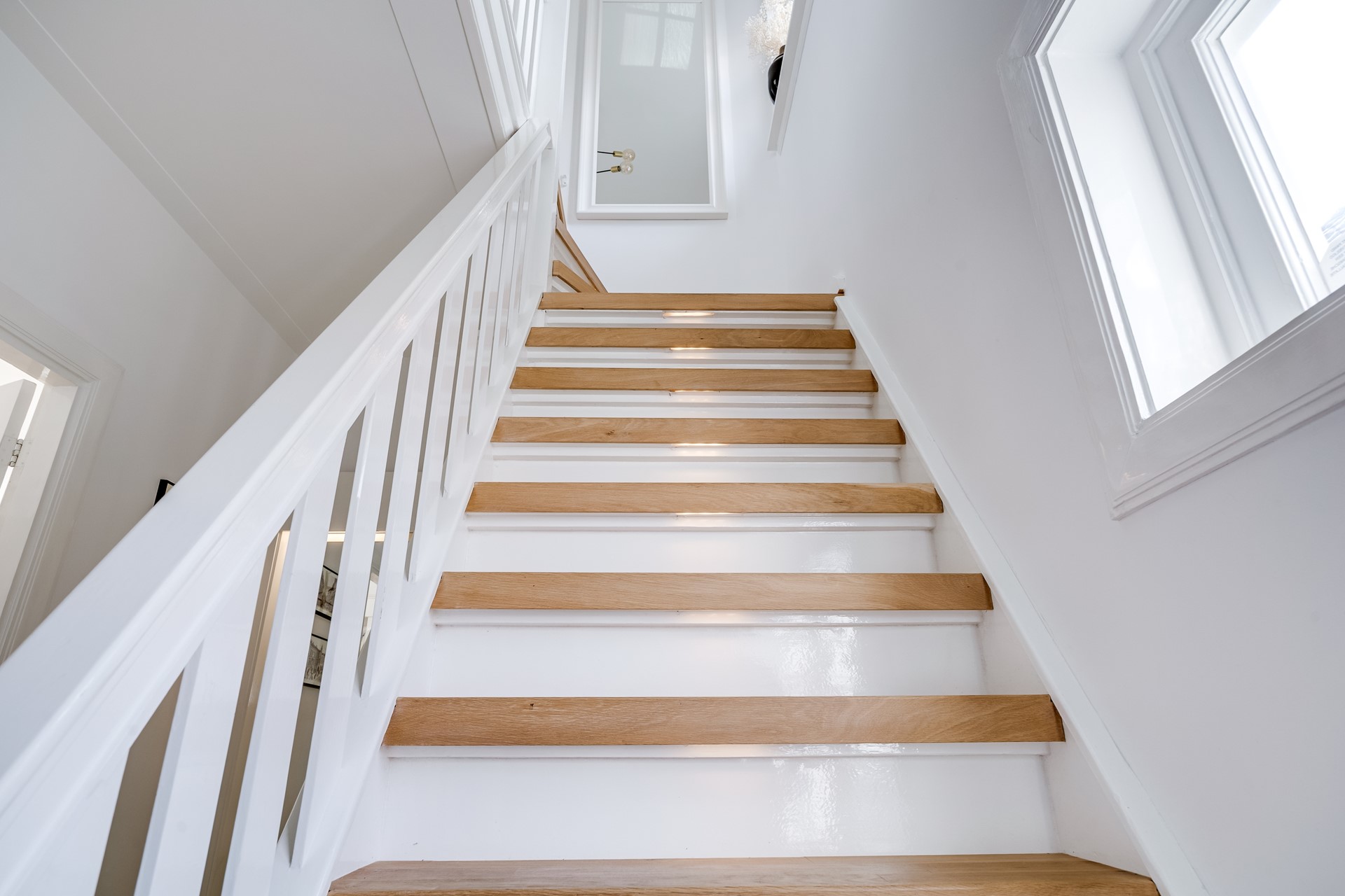 Vaste trap naar geïsoleerde zolderverdieping met nog eens 2 slaapkamers, bergruimte en een praktische was- en stookruimte.