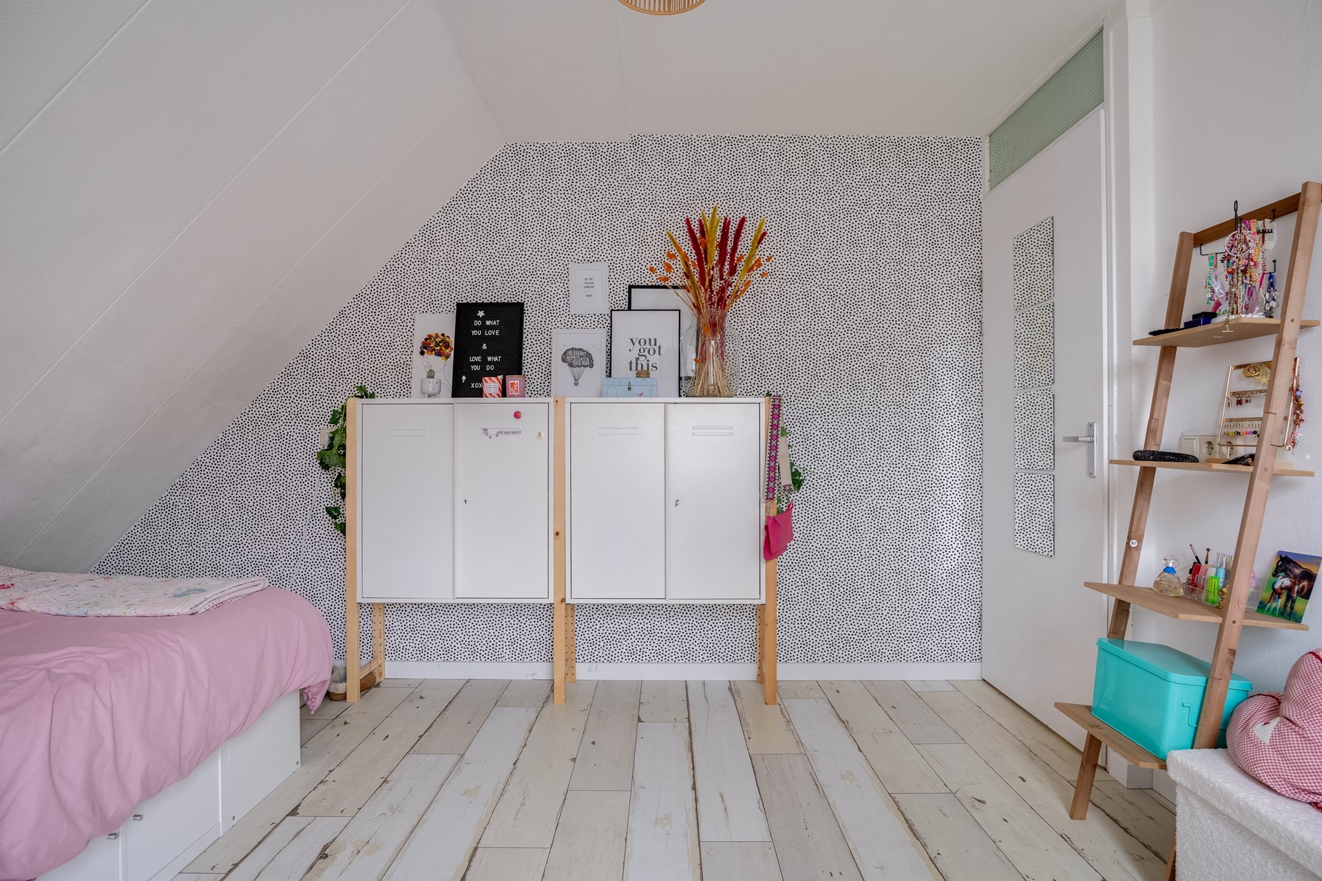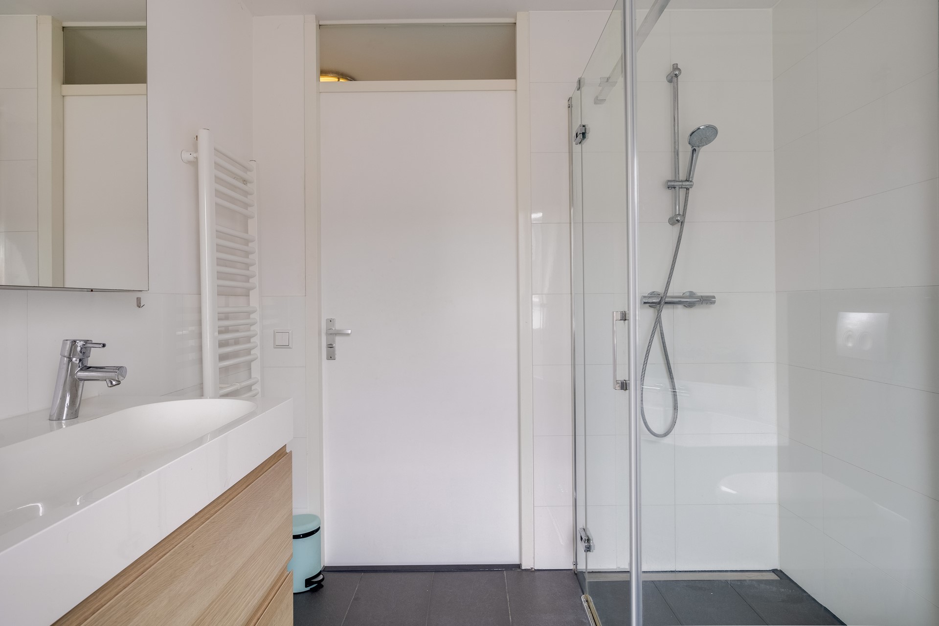 Vaste trap naar verrassend ruime tweede verdieping met een vierde ruime slaapkamer en met speelse hoge nok alsmede een praktische tweede (!) badkamer. Deze badkamer is voorzien van een douche en wastafel.